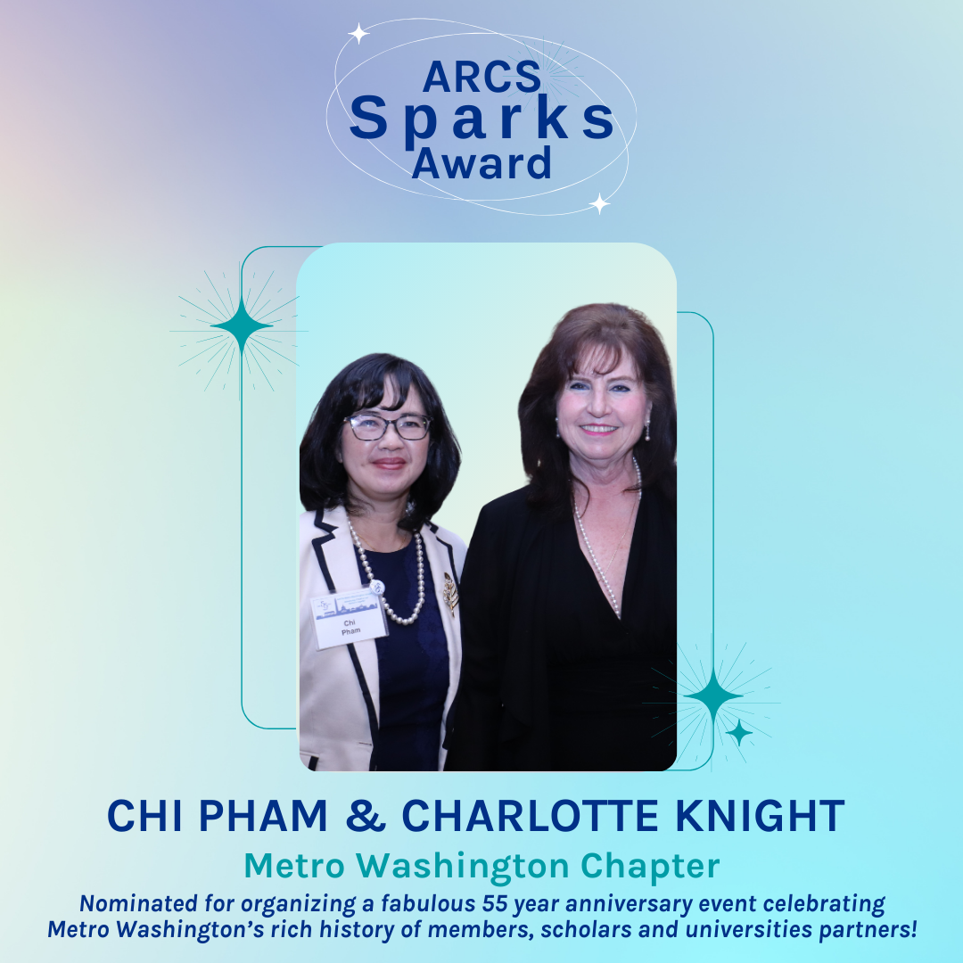 The ARCS Sparks Award is meant to honor ARCS members who exhibit small, everyday acts of kindness or displays of leadership or commitment to ARCS Foundation within the chapter or at the national level.